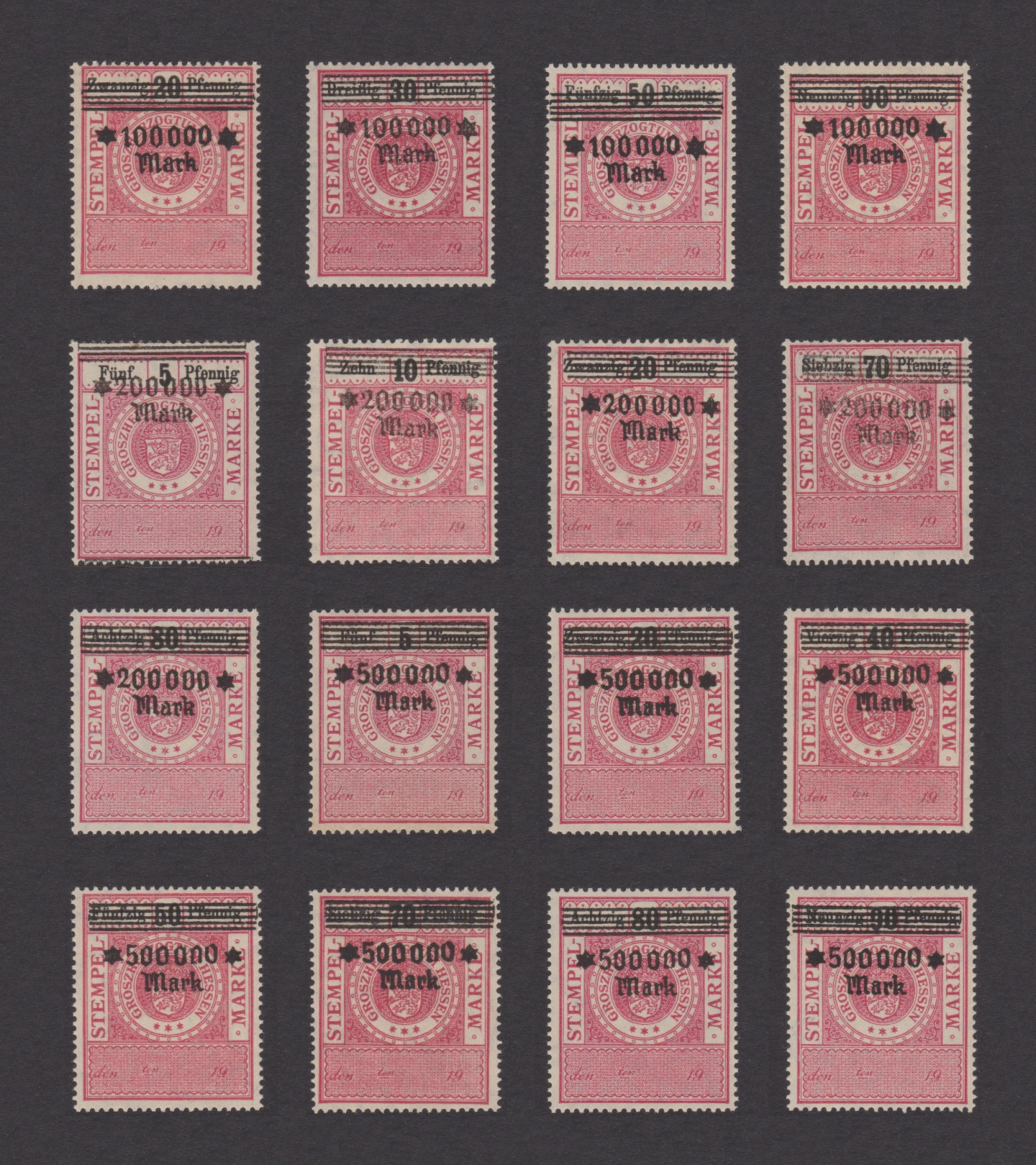 1920s Hyper-Inflation Revenue Stamps of  Hesse, Germany (Red)