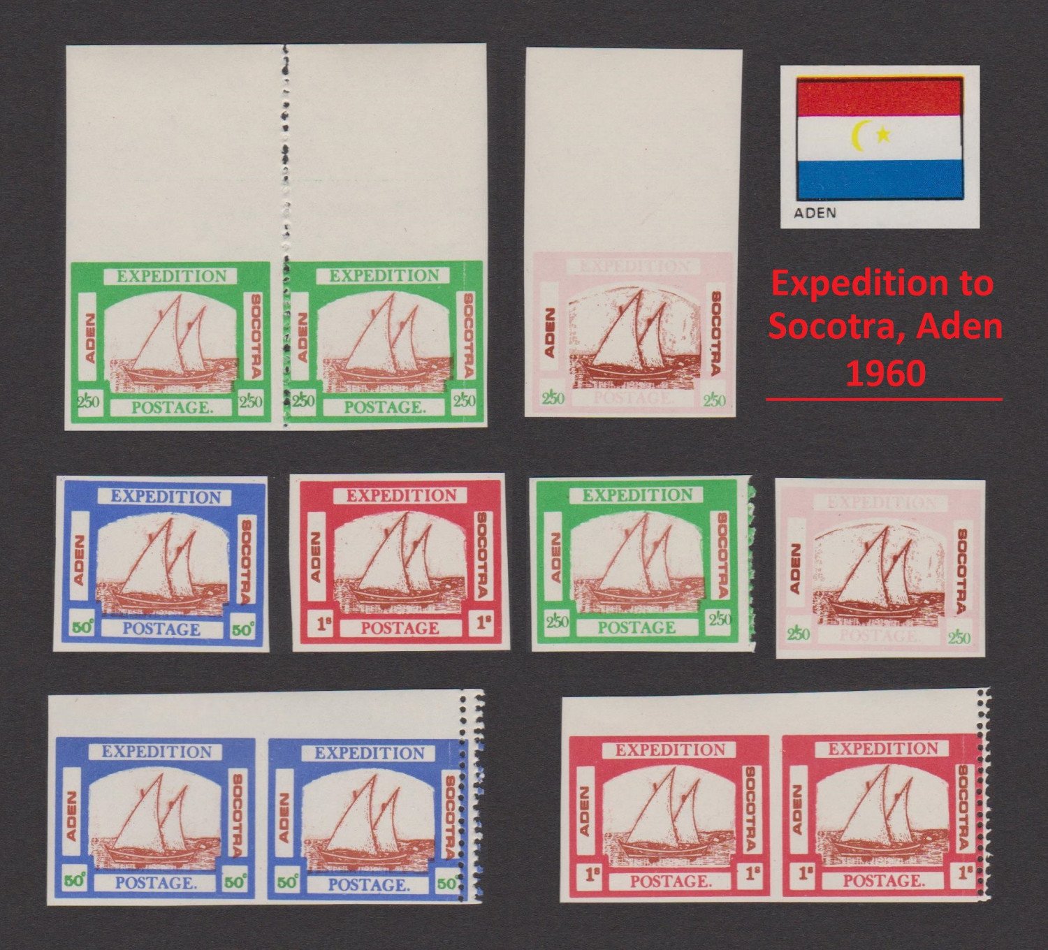 Printer's waste of the Cinderella postage stamps issued for the 1960 expedition to Socotra, Aden