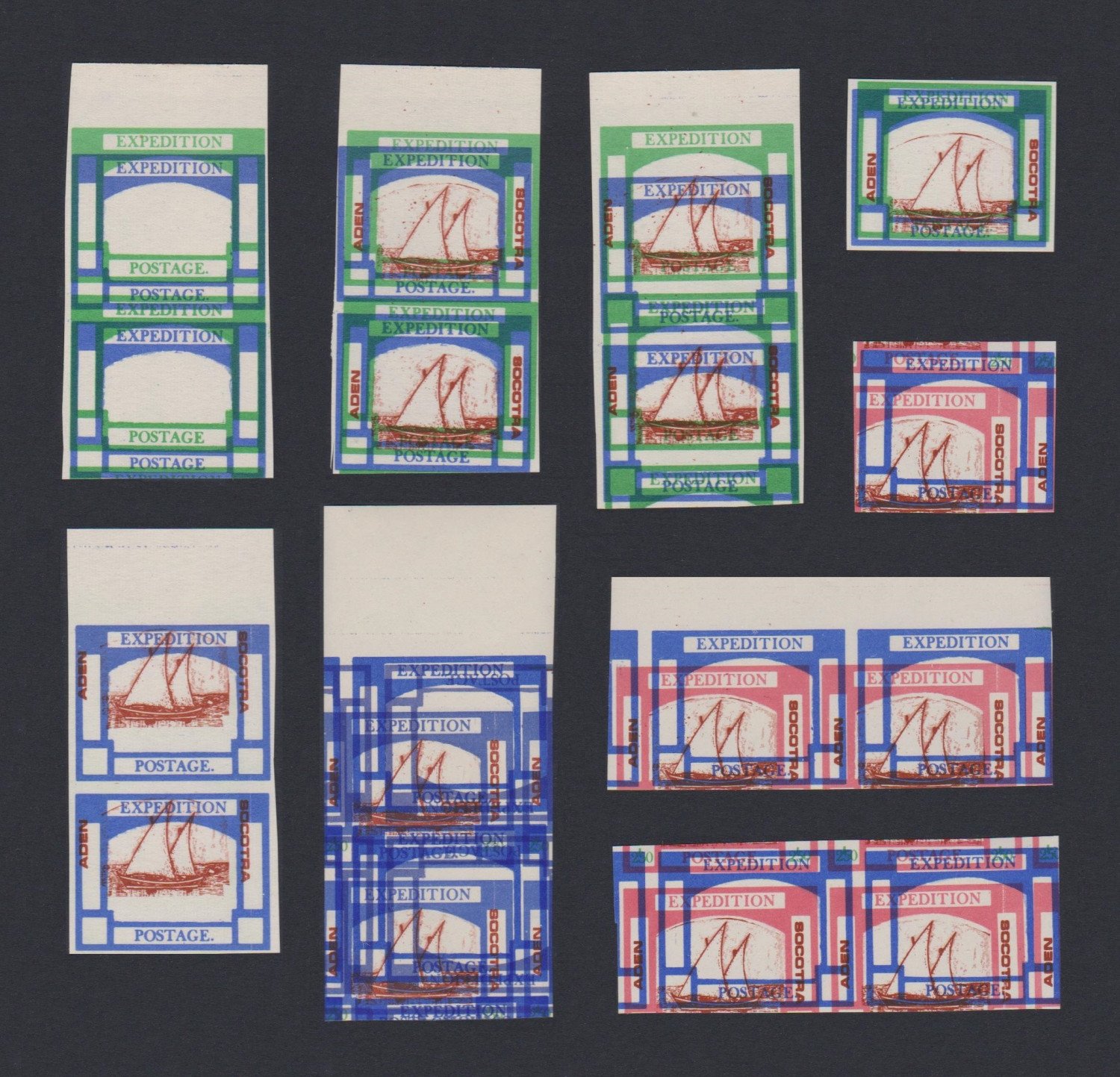 Printer's waste of the Cinderella postage stamps issued for the 1960 expedition to Socotra, Aden