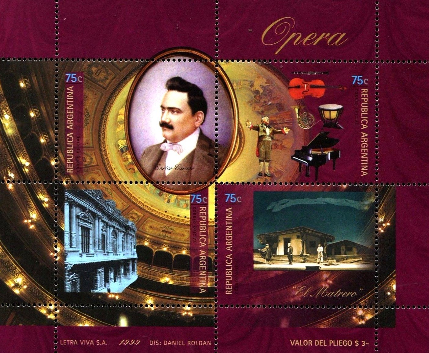 Argentina, Scott Nr 2058 (1999) Nov 23, 1903: American debut of Enrico Caruso at the NY Metropolitan Opera, in Rigoletto. His performance is so successful that he remains with the Met for the rest of his career.
