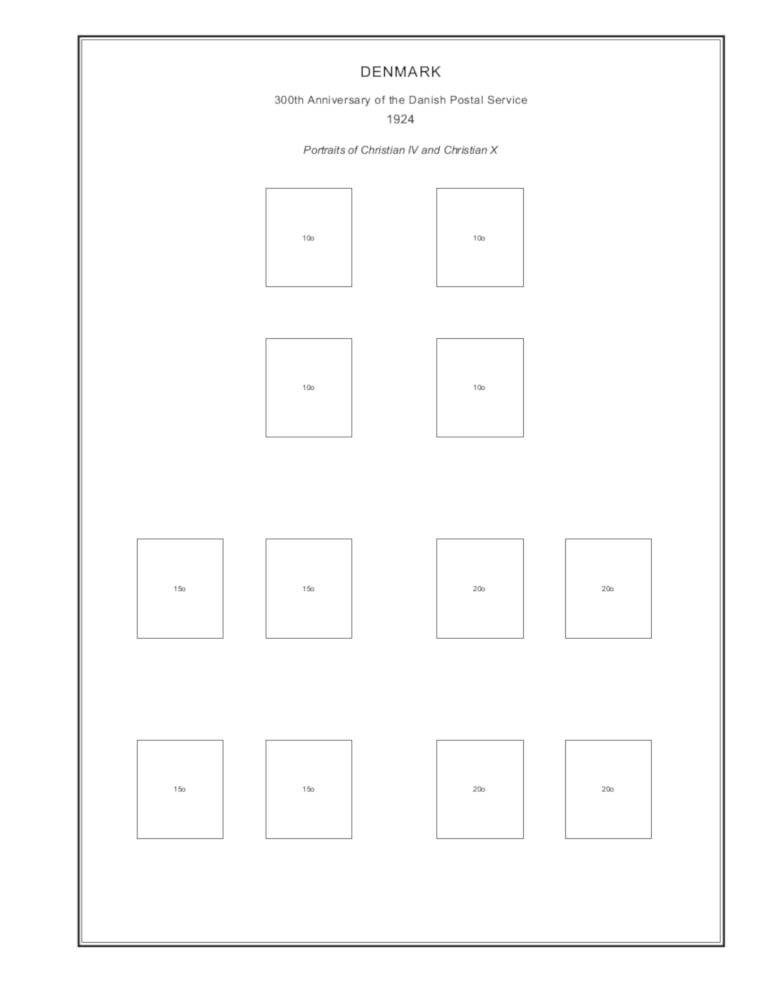 A Custom Album Page for the 300th Anniversary of Danish Postal Service Stamp Series. Made to be used Steiner's Printable Stamp Album Pages. http://www.pressdat.com/300th-anniversary-danish-postal-service/