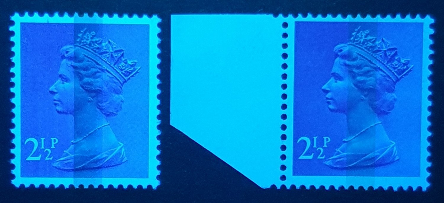 DG25.4.4 (FCP, CB B3) and DG20.4.4c (FCP, Thin Paper, CB B3 “Jet-phosphor”) under Leuchtturm short-wave uv-lamp.