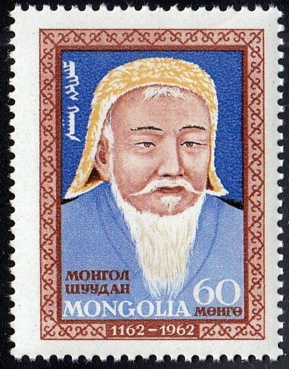 Mongolia, Scott Nr 307 (1962) Oct 29, 1927: Russian archaeologist Peter Kozloff uncovers the tomb of Genghis Khan . . . apparently. The claim is still in dispute.