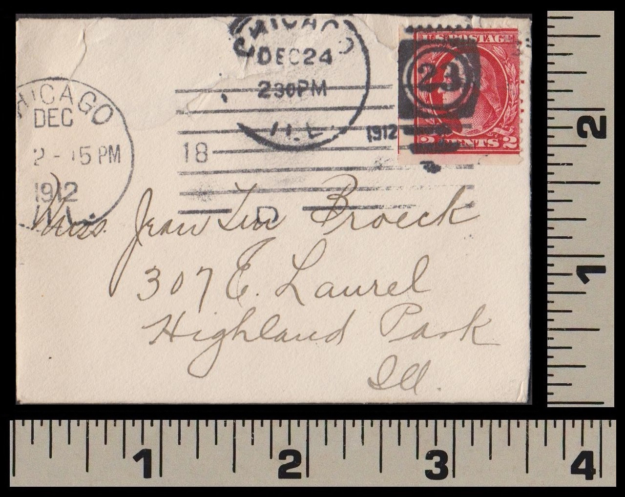 Tiny Chicago cover mailed on Christmas Eve, 1912